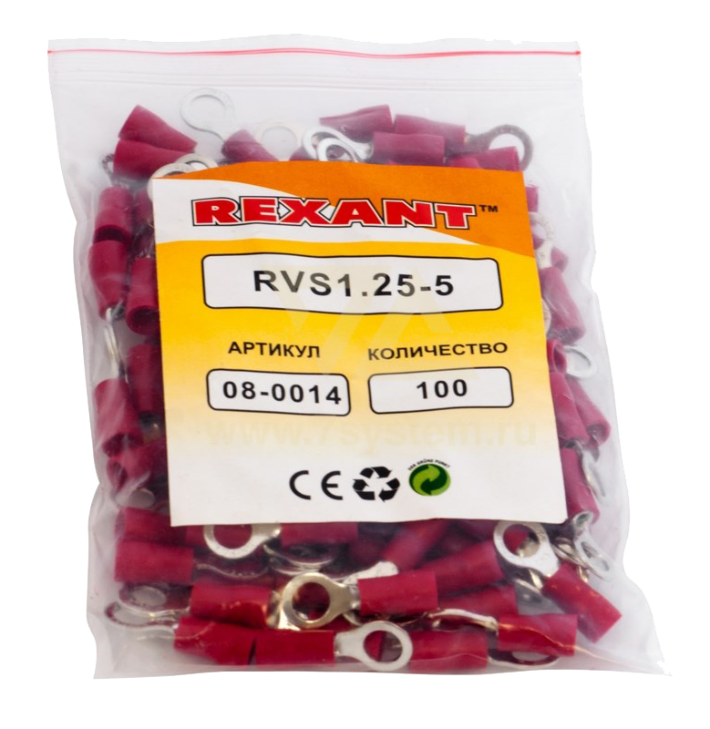 Наконечник изолированный кольцевой VR1.25-5 Rexant, 100 шт/упак