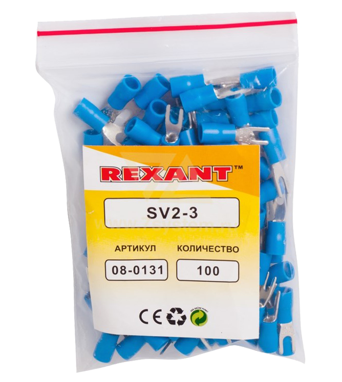 Наконечник изолированный вилочный VS2-3 Rexant, 100 шт/упак