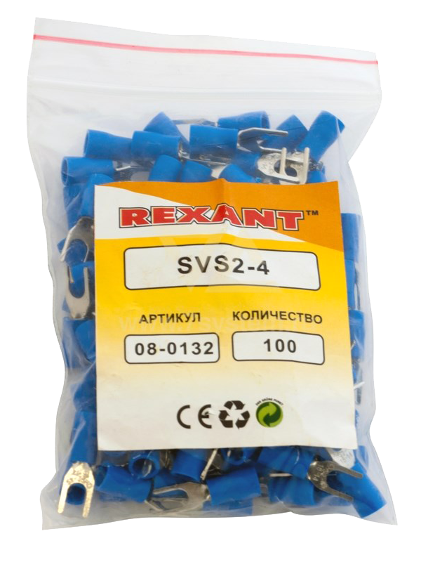 Наконечник изолированный вилочный VS2-4 Rexant, 100 шт/упак