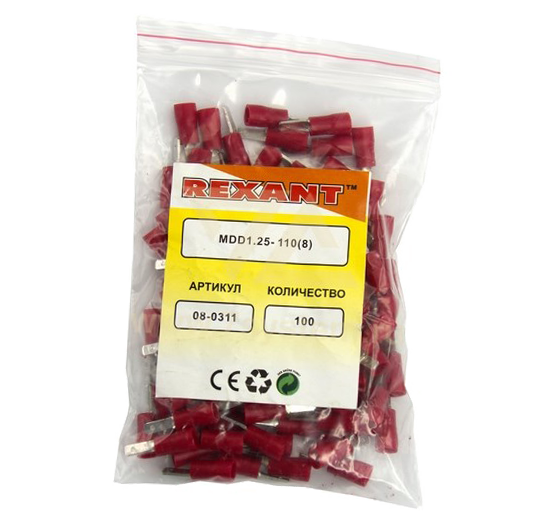 Клемма изолированная плоская (штекер) VM1.25-110(8) Rexant, 100 шт/упак