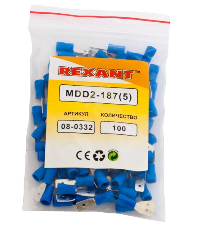 Клемма изолированная плоская (штекер) VM2-187(8) Rexant, 100 шт/упак