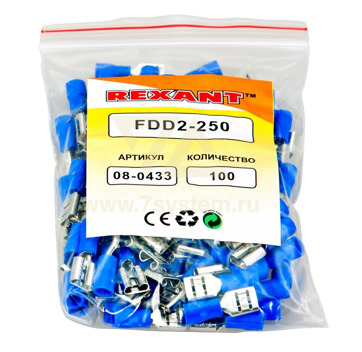 Клемма изолированная плоская (гнездо) VF2-250 Rexant, 100 шт/упак