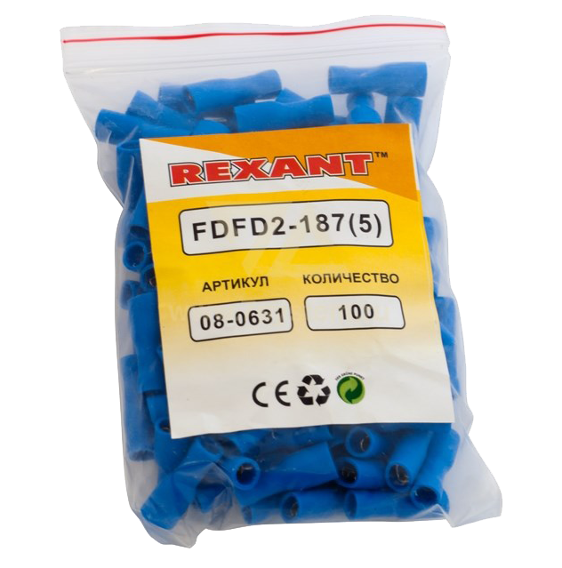 Клемма полностью изолированная плоская (гнездо) VF2-187(8)A Rexant предназначена для создания качественного подключения электрооборудования или соединения проводов между собой, которое при необходимости, возможно разъединить без лишних усилий. Такая клемма используется для оконцовывания многожильных медных проводов при монтаже мобильных электрических контактных соединений на подвижном составе (автомобиле-, вагоно-, самолето- и судостроении) или в других местах, где важна надежность соединения (к примеру, телефонное или климатическое оборудование). Полностью изолированная плоская клемма REXANT состоит из двух компонентов: металлического коннектора (гнездо) и защитного изолятора, полностью закрывающий штекер. Металлический коннектор изготовлен из латуни, с поверхностным электролитическим лужением, а изолятор клеммы из поливинилхлорида (ПВХ), который надежно защищает место обжима кабеля и контактную часть. Цвет изолятора синий. Обжатие производится специальными пресс-клещами (HT-301) поверх защитного изолятора. Каждая клемма имеет фиксатор замкового типа для более прочного механического соединения с штекерным разъемом.