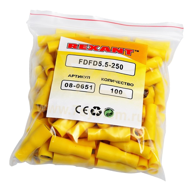 Клемма полностью изолированная плоская (гнездо) VF5.5-250A Rexant, 100 шт/упак