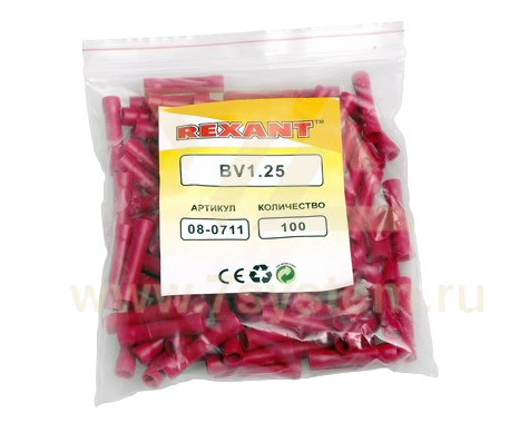 Гильзы изолированные соединительные VB1.25 Rexant, 100 шт/упак предназначена для качественного и быстрого соединения проводов между собой, а также изоляции места их соединения. Такая гильза используется для соединения многожильных медных проводов соответствующего диаметра при монтаже мобильных электрических контактных соединений на подвижном составе (автомобиле-, вагоно-, самолето- и судостроении) или в других местах, где важна надежность соединения (к примеру, радио- или климатическое оборудование). Изолированный соединитель REXANT состоит из двух компонентов: металлической бесшовной трубки и защитного изолятора, закрывающего коннектор полностью. Цельнотянутая металлическая трубка (контактная часть) изготовлена из латуни, с поверхностным электролитических лужением, имеет посередине ограничительную высечку, для равномерного заведения проводов с обеих сторон. Изолятор гильзы изготовлен из поливинилхлорида (ПВХ), надежно защищающий контактную часть от внешних воздействий, а человека от поражения электрическим током. Обжатие производится путем механической деформации специальными пресс-клещами (HT-301 H, HT-301 N, HT-301 W) поверх защитного изолятора.
