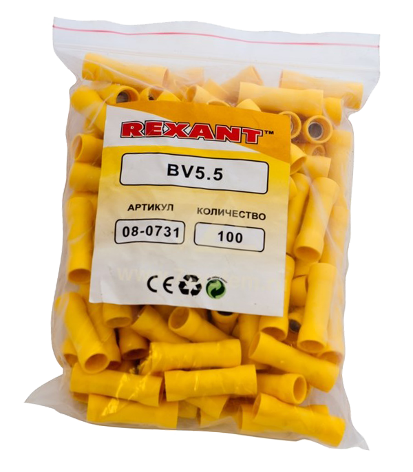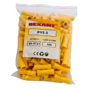 Гильзы изолированные соединительные VB5.5 Rexant предназначена для качественного и быстрого соединения проводов между собой, а также изоляции места их соединения. Такая гильза используется для соединения многожильных медных проводов соответствующего диаметра при монтаже мобильных электрических контактных соединений на подвижном составе (автомобиле-, вагоно-, самолето- и судостроении) или в других местах, где важна надежность соединения (к примеру, радио- или климатическое оборудование). Изолированный соединитель REXANT состоит из двух компонентов: металлической бесшовной трубки и защитного изолятора, закрывающего коннектор полностью. Цельнотянутая металлическая трубка (контактная часть) изготовлена из латуни, с поверхностным электролитических лужением, имеет посередине ограничительную высечку, для равномерного заведения проводов с обеих сторон. Изолятор гильзы изготовлен из поливинилхлорида (ПВХ), надежно защищающий контактную часть от внешних воздействий, а человека от поражения электрическим током. Обжатие производится путем механической деформации специальными пресс-клещами (HT-301 H, HT-301 N, HT-301 W) поверх защитного изолятора.