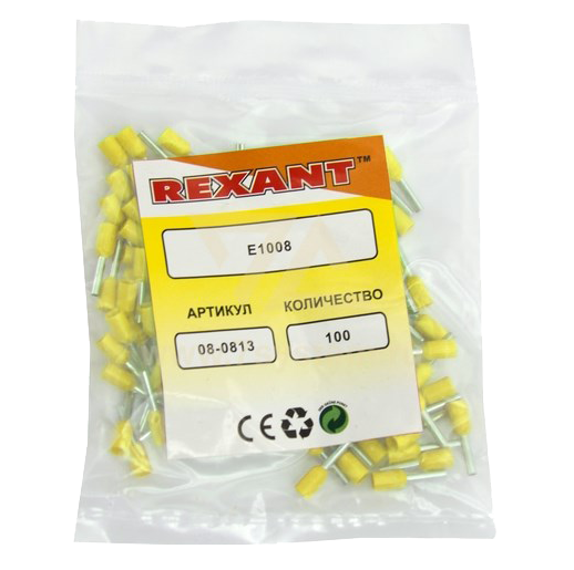Наконечник штыревой втулочный CE010008 Rexant, желтый, 100 шт/упак