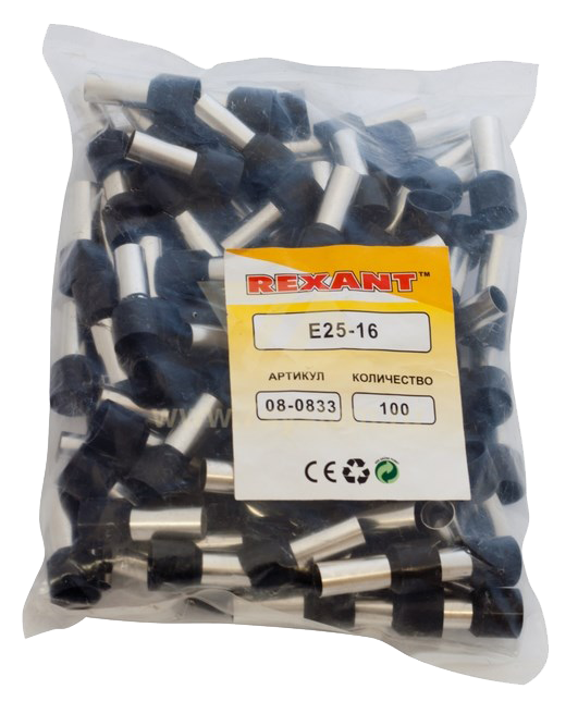 Наконечник штыревой втулочный CE250016 Rexant предназначен для создания быстрого и качественного подключения различного электрооборудования и монтажа электросетей. Такой современный способ подготовки кабеля к соединению заменяет процесс облуживания или скрутки многожильных медных проводов, формируя целостностное окончание кабеля с последующим подключением промышленного или бытового электрооборудования. Втулочный наконечник состоит из латуни, с поверхностным электролитическим лужением, и рассчитан на монтаж одного проводника с соответствующим сечением под опрессовку. Предварительно зачищенная жила заводится внутрь латунной втулки, и обжимается специальными пресс-клещами (HT-301S арт.12-3119) в считанные секунды. Для удобства заведения многожильного провода внутрь латунной втулки предусмотрена манжета конической формы, изготовленная из поливинилхлорида (ПВХ), обеспечивающая надежную защиту соединения от влаги и других внешних воздействий.
