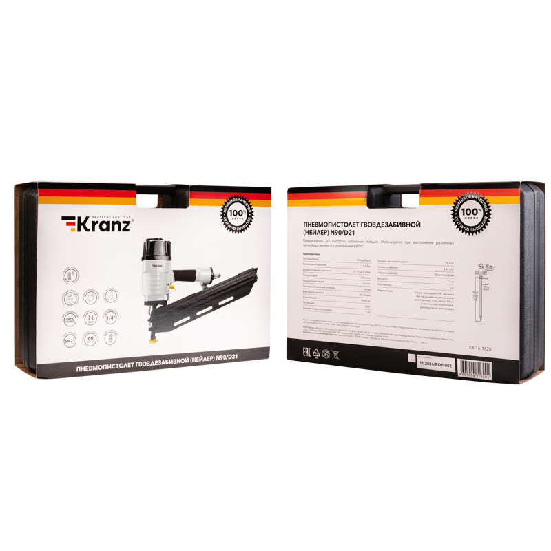 Пневмопистолет гвоздезабивной N90/D21 KRANZ, наклон 21 градус