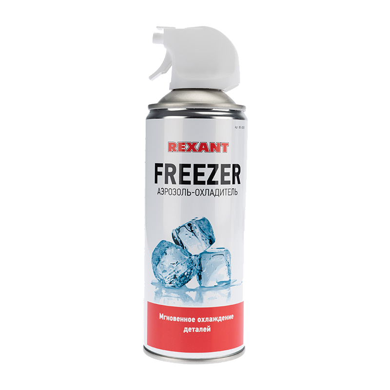 Газ охладитель Freezer Rexant, 400 мл - используется для охлаждения перегретых компонентов в процессе пайки или отпаивания частей, или для низкотемпературного тестирования электромеханических систем и электросхем, обнаружения трещин в печатных платах.