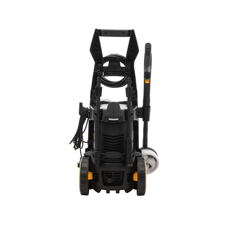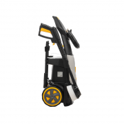 - Мойка отличается мобильностью благодаря кабелю длиной 5 м, удобной рукоятке и колесам. Шланг длиной 5 м обеспечивает удобство использования.
