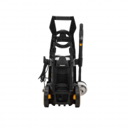 - На корпусе мойки располагается держатель пистолета и распылителя, а также встроенный крюк для крепления провода. Предусмотрены быстросъемные коннекторы фиксации шланга и насадок.