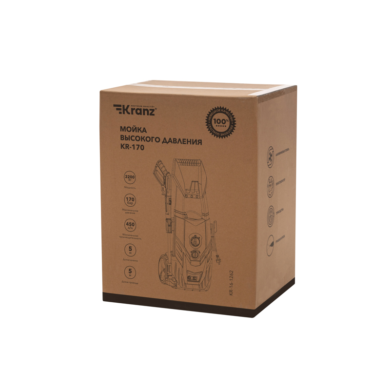 Мойка высокого давления KR-170 KRANZ, 2200Вт, 450 л/ч, 170 Бар