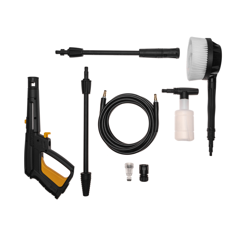 - В комплект входит пеногенератор, который делает возможным использование моющих средств для очистки поверхностей.