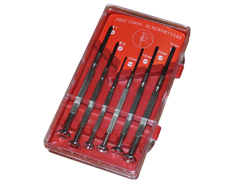 - отвертки шлицевые — 4 штуки разных размеров (1.4 мм; 1.8 мм; 2.4 мм; 3.0 мм)