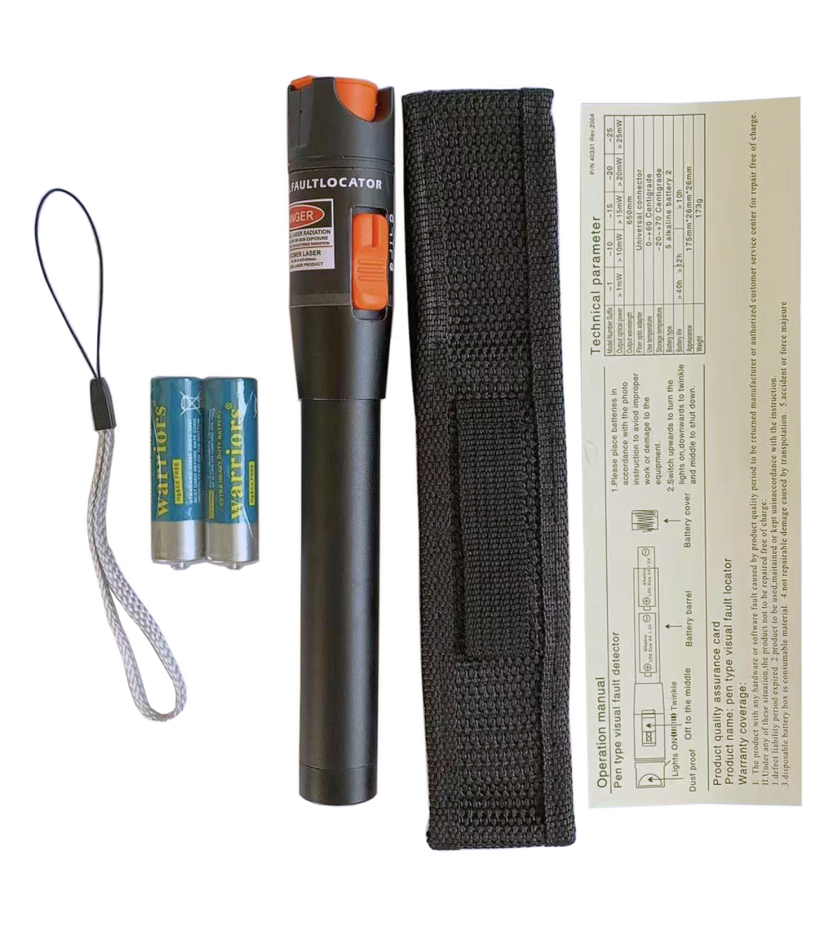 Работает с одномодовым и многомодовым волокном, позволяет обнаруживать изгибы и разрывы волокна в оптических патчкордах, кабельных модулях, сплиттерах и т.п. Место повреждения волокна или оболочки светится красным цветом. Дальность действия до 14 км.