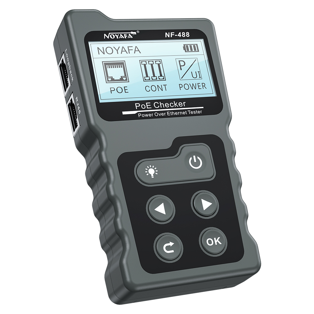 Noyafa NF-488 — это многофункциональный тестер кабелей для проверки целостности и качества сетевых соединений. Он предназначен для работы с различными типами кабелей, включая Ethernet (категории 5e, 6 и 6a), а также коаксиальные и телефонные кабели.