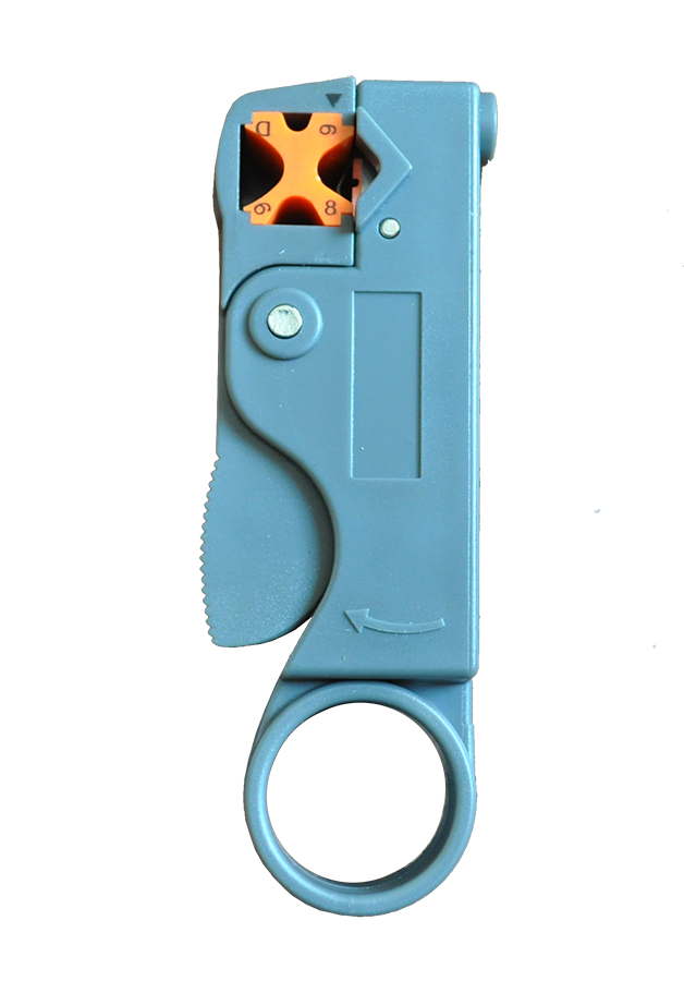 Инструмент для зачистки коаксиального кабеля RG-58 / RG-59 / RG-6 HT-332 IronMaster производит снятие оболочки с изоляцией кабеля поворотом инструмента с помощью двух режущих поверхностей.