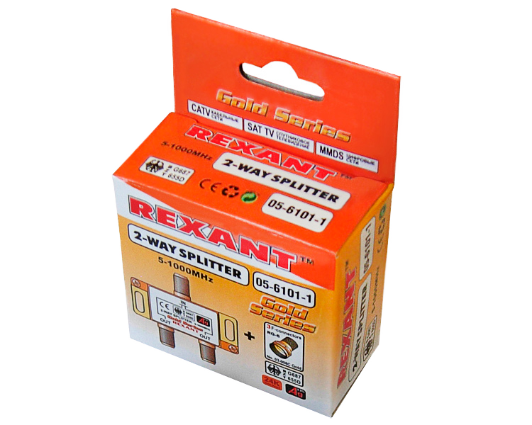 Делитель на 2 в упаковке 2-WAY Splitter Gold (+ 3 F-разъема) Rexant