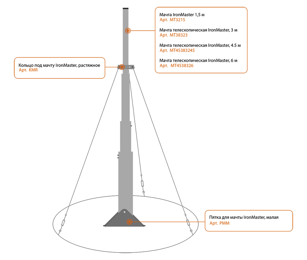 В зависимости от способа монтажа, для крепления мачты отдельно поставляются:
