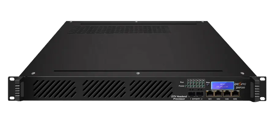 DHP300 платформа нового поколения. Корпус высотой 1U имеет 6 независимых слотов для модулей. Модули позволяют выполнять функции кодирования, декодирования, транскодирования, мультиплексирования, дескремблирования, а также комбинацию всех этих функций. DHP300 поддерживает несколько входных и выходных интерфейсов.