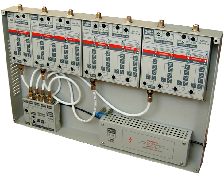 Включает в себя корпус для размещения канальных модулей (на 14 каналов), блок питания и выходной широкополосный усилитель.