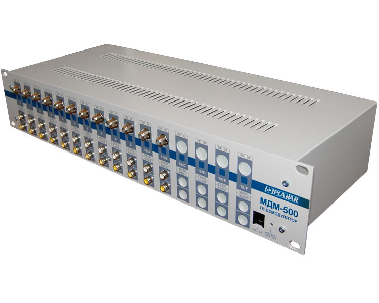 Основу МДМ составляет кассета МДМ-500, выполненная в 19 дюймовом стандарте МЭК 297. Внутри кассеты располагаются модули демодуляторов ДМ-500. МДМ может быть выполнен с любым количеством модулей от 1 до 16 шт., причем установку дополнительных модулей (при наличии свободных установочных мест) можно выполнить самостоятельно.
