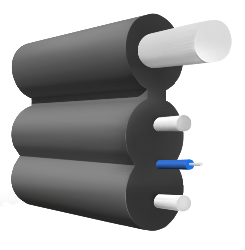Применяется в FTTx сетях, где требуется минимальные геометрические размеры оболочки, вместе с тем должна обеспечиваться надежная защита волокна от климатических и механических воздействий.