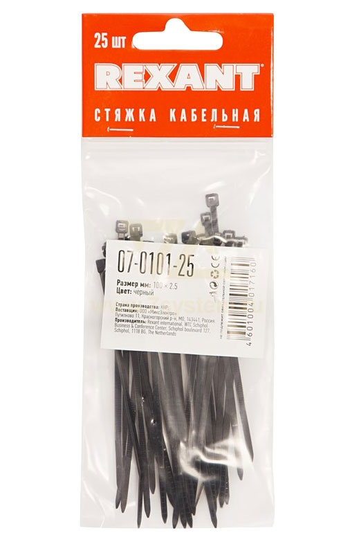 Хомут 100 мм x 2.5 мм Rexant, черный, 25 шт