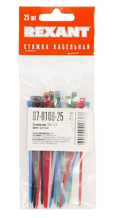 Хомут 100 мм x 2,5 мм Rexant, цветные, 25 шт