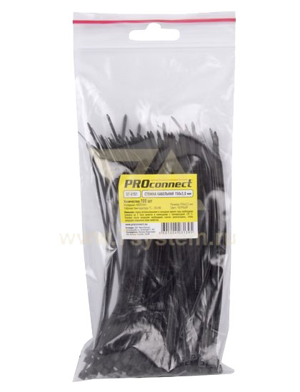 Хомут 150 мм x 2,5 мм Proconnect, черный, 100 шт