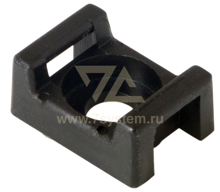 Площадка для крепления стяжки позволяет с помощью одного винта или самореза прикрепить пучки проводов, стянутые хомутом, к любой поверхности. Плюс к этому площадку для крепления стяжки используют также и для закрепления иных нетяжёлых предметов. Выполнена площадка из пластика черного цвета и оснащена специальным отверстием под хомут.