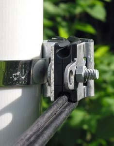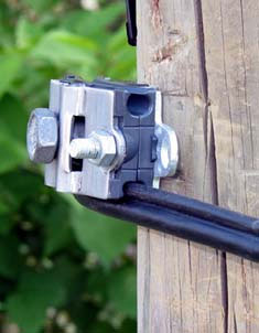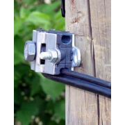 - Зажим можно устанавливать на опорах всех типов, используя стальную ленту, или же с помощью болта (на просверленных насквозь опорах)