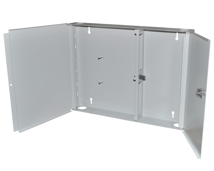 Шкаф кроссовый оптический настенный с планкой внутри под 2 сменные планки, до 16 портов FC, SC, ST или до 32 портов LC. В кроссе используется пластиковая сплайс-кассета СКУ-01. Позволяет монтировать оптические волокна без разрезания модулей.