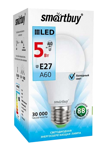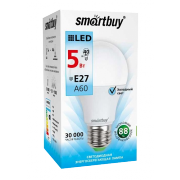 Лампа LED A60 Smartbuy, Е27, 5 Вт / 40 Вт, 4000 К, холодно-белая