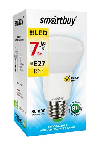 Лампа LED R63 Smartbuy, Е27, 7 Вт / 60 Вт, 3000 К, тепло-белая