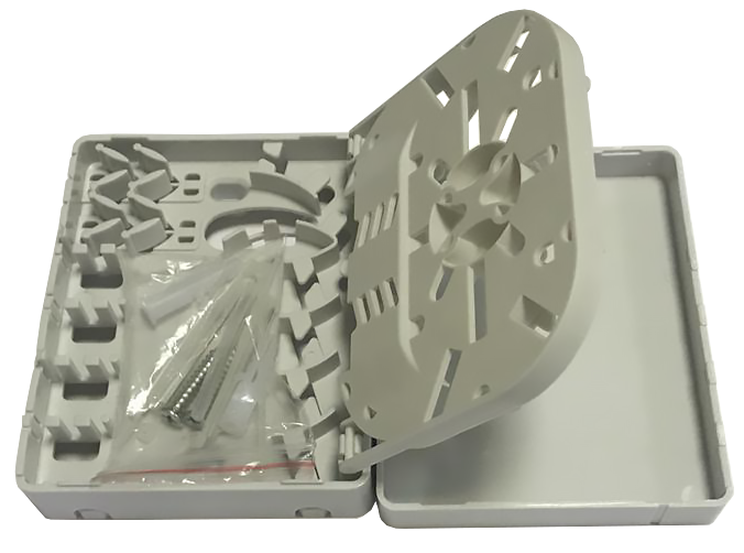 X-line FTTH-FDB-04 — оптические распределительные коробки, используются в системах передачи данных для соединения и коммутации магистральных и абонентских оптических кабелей, а также механической защиты сварных соединений оптических волокон.