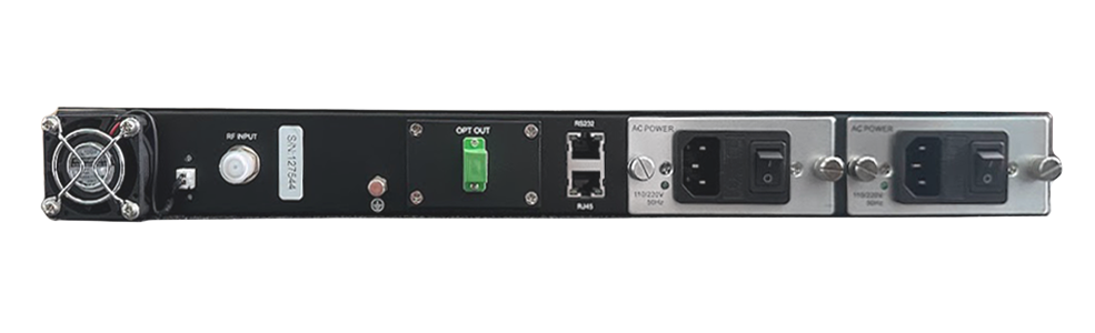 Передатчик имеет высоту 1U и предназначен для установки в 19-дюймовую стойку. В передатчике использован DFB-лазер непрерывного излучения с низким уровнем шума (США / Япония). DFB-лазер оснащен термоэлектрическим охладителем. Благодаря высококачественным компонентам и микропроцессорному управлению оптический передатчик имеет высокие эксплуатационные характеристики и обеспечивает качественную передачу оптического сигнала на большие расстояния.