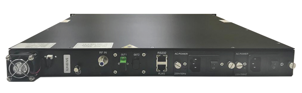 внешней модуляцией. Передатчик имеет высоту 1U и предназначен для установки в 19-дюймовую стойку.