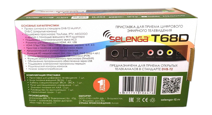 Приемник эфирный DVB-T/T2 Т68D SELENGA.