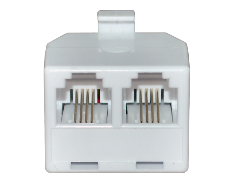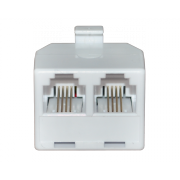 На одном конце двойника расположен штекер 6Р-4С, подключающийся в телефонное гнездо 6P-4C. На другом конце - два гнезда 6Р-4С, предназначенные для двух телефонных кабелей.