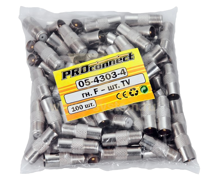 Переходник F(гнездо) - ТВ(штекер) Proconnect, 100 шт/упак