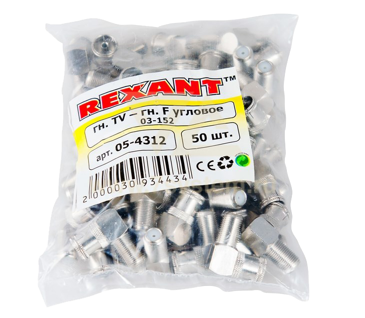Переходник F(гнездо) - ТВ(гнездо) угловой Rexant, 50 шт/упак