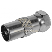 Переходник для соединения двух радиочастотных компонентов или кабеля с оборудованием, с разъемами гнездо F и гнездо ТВ. Применяется главным образом при подключении эфирного, кабельного и спутникового телевидения.Статус: Под заказ