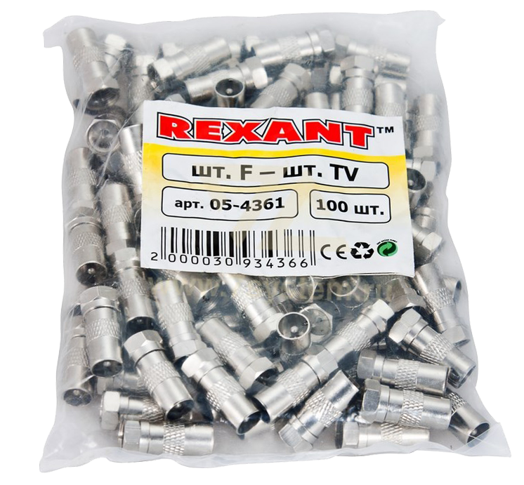 Переходник F(штекер) - ТВ(штекер) Rexant, 100 шт/упак