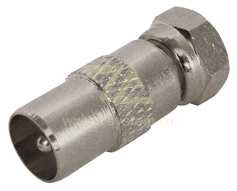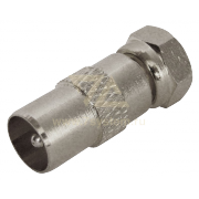 Переходник для соединения двух ТВ кабелей волновым сопротивлением 50 или 75 Ом, на концах которых расположены гнезда ТВ-разъема. Применяется главным образом для подключения эфирного, кабельного и спутникового телевидения к телевизионному оборудованию.Статус: Под заказ