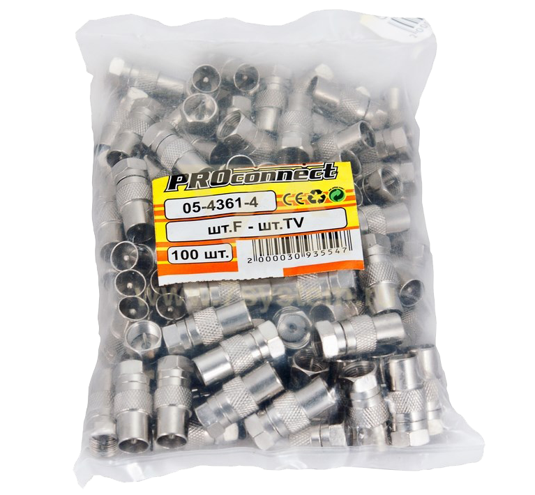 Переходник F(штекер) - ТВ(штекер) Proconnect, 100 шт/упак