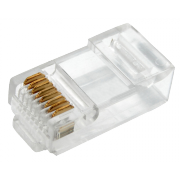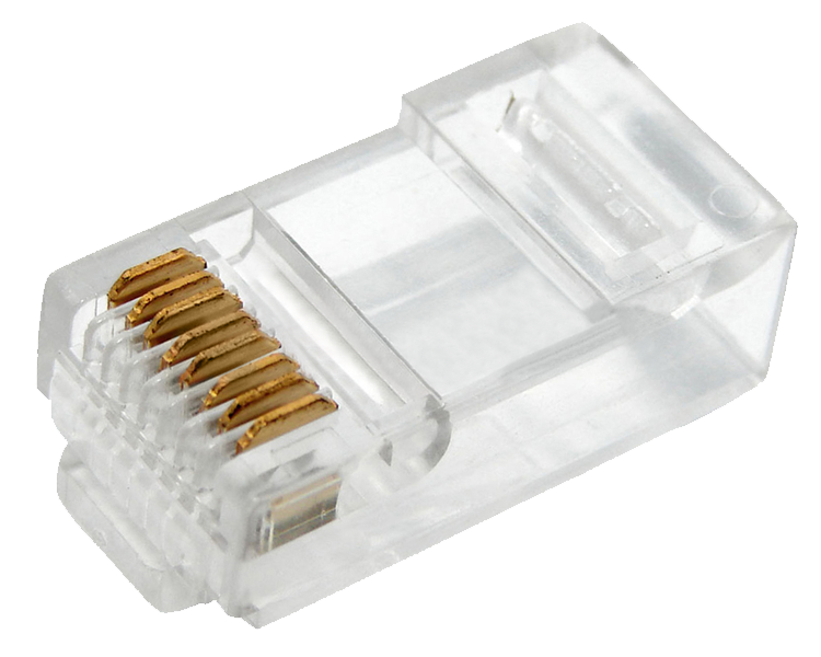 Штекер изготовлен из прозрачного качественного пластика и имеет 8 посадочных мест и 8 ножей-контактов. На контакты (ножи) нанесен слой технического золота 3 мкм для безупречной пропускной способности разъема.