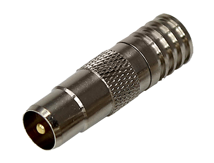 Разъем монтируется на телевизионный кабель RG-6 методом обжима с помощью специального обжимного инструмента и передает идущий по кабелю сигнал на ТВ устройства.