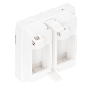 Для организации информационных портов на рабочем месте при помощи модулей типа KeyStone в коробах и внутренних розетках применяется широкий спектр вставок французского стандарта Mosaic 22,5х45 мм и 45х45 мм. Вставки фиксируются в лицевые панели при помощи защелок.